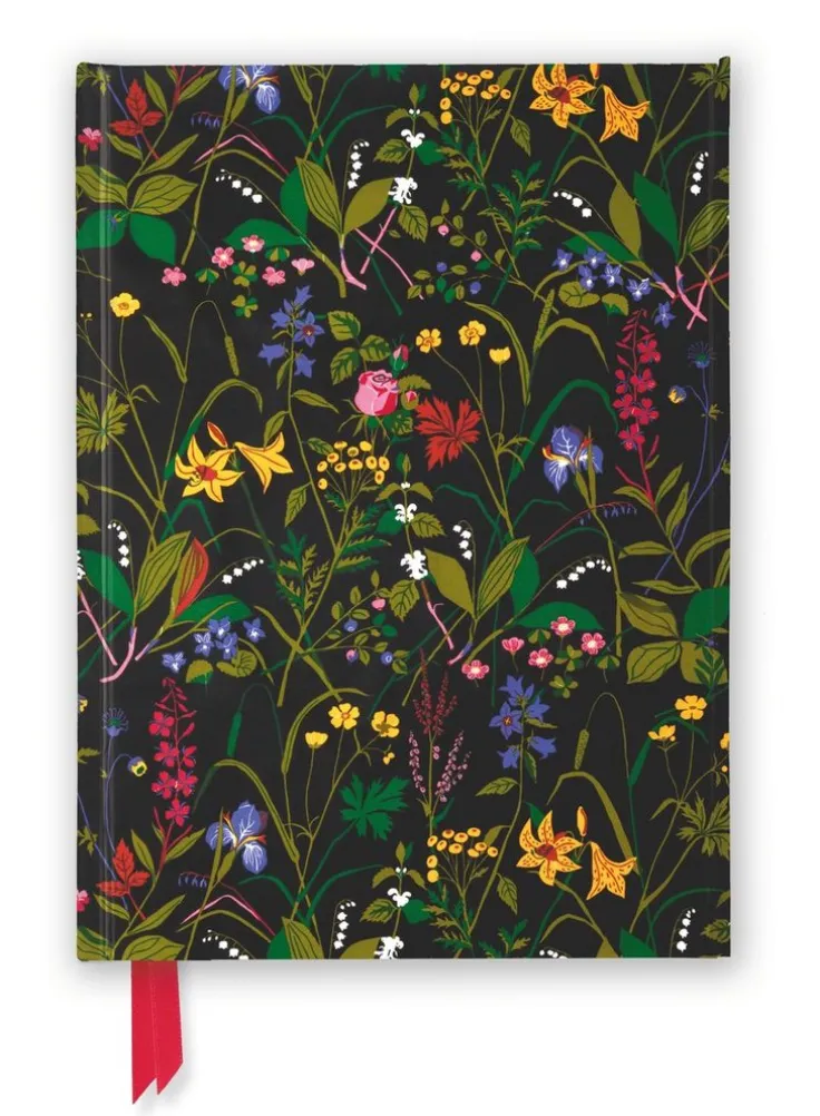 Inbunden anteckningsbok i A5 med präglat hårdomslag och med fina folierade detaljer på omslaget. Boken stängs med en magnetisk kant och innehåller 176 elfenbensfärgade och linjerade sidor. Längst bak i boken finns en rymlig förvaringsficka för dina lösa papper. Två märkband i matchande färg gör att du lätt hittar bland dina anteckningar. Insidan av pärmen är klädd i rött papper och en kort historia står på sista sidan om konstnären Gocken Jobs. För de flesta är namnet Jobs synonymt med rikt blomstrande tyger som har varit klassiker inom svensk textilkonst sedan 1940-talet. Mindre känt är att Lisbet Jobs (1909–1961) och hennes syster Gocken Jobs (1914–1995) först utbildade sig till keramiker. Som två självständiga konstnärer arbetade de sedan sida vid sida och deras verk fick internationell berömmelse. Ros och lilja designades för textil av Gocken Jobs år 1946. Mönstret skapades i Leksand, Dalarna, där systrarna delade ateljé. Det är inspirerat av de omgivande blommande ängarna och blomsterbäddarna. Skisser för mönstret finns i Nationalmuseums arkiv i Stockholm, Sverige.