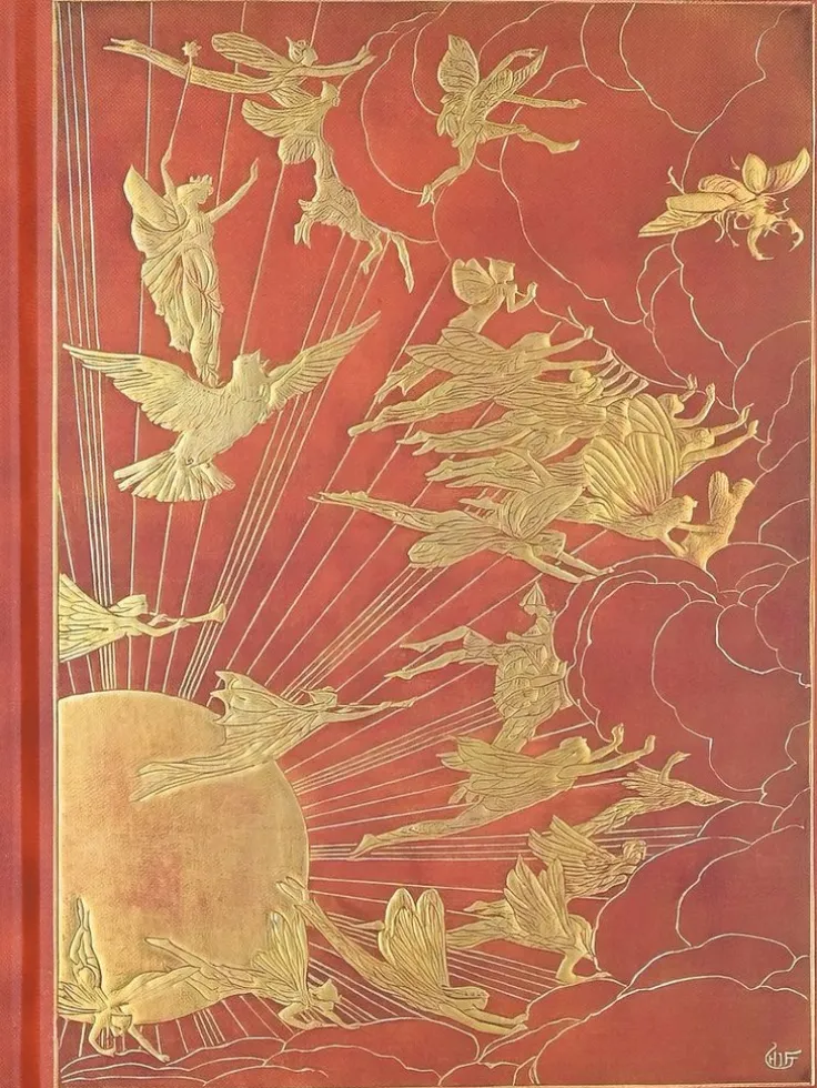 Inbunden anteckningsbok i A5 format med präglat hårdomslag och dekorerad med vackra folierade detaljer. Matchande design på ryggen av boken. Sidkanterna är folierade i guld. Boken innehåller 160 linjerade elfenbensvita sidor med svagt grå linjer. Kraftigt papper i 120g. En sidmarkör i matchande satin i gör att du lätt hittar bland dina anteckningar.Älvorna delar molnen och välkomnar solen på omslaget till denna fantastiska anteckningsbok. Inspirerad av förstaupplagans omslag av Andrew Langs Orange Fairy Book, illustrerad av Henry J. Ford och publicerad 1906, har designen en detaljerad prägling och skimrande guldfoliedekorationer.