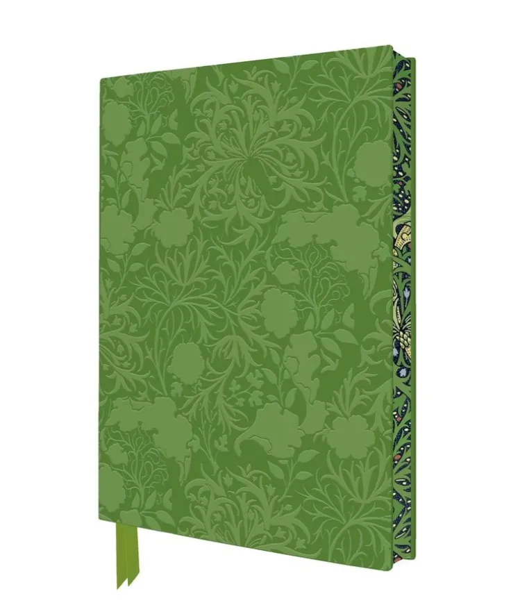 Inbunden anteckningsbok i A5 med präglat mjukt omslag i en enhetlig färg. Omslaget är i ett läderliknande mjukt material och innehåller 176 elfenbensfärgade och linjerade sidor. Boken är omsorgsfullt utformad med mönstrade sidkanter fyllda av blommor, slingrande rankor och dekorativa mönster. Två märkband i matchande färg gör att du lätt hittar bland dina anteckningar. På omslaget och sidkanterna mönster av William Morris.Född i Kent, var William Morris (1834-1896) en framstående person med många talanger, han var arkitekt, författare, social aktivist, konstnär och, med sin Kelmscott Press, en viktig figur inom Arts and Crafts-rörelsen.