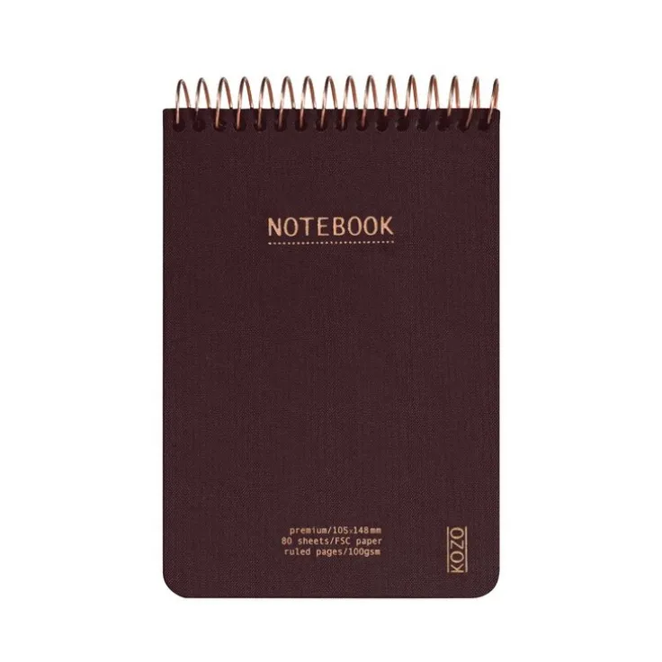KOZO Premium anteckningsbok är definitivt en av de snyggaste anteckningsböckerna på marknaden. Det kraftiga canvasomslaget med vackra detaljer i brons och den kaxigt stora spiralen, även den i brons, gör den perfekt att skriva och ta anteckningar i, både när du har den liggandes i knät eller till och med stående utan stöd. Och givetvis en vacker inredningsdetalj till ditt skrivbord. Att skriva på det cremefärgade 100 g pappret ger en lyxig känsla. Alla 80 sidor i anteckningsboken har en datumrad uppe till höger, enkelt och praktiskt. Matchar alla andra KOZO skrivbordsartiklar i samma färgnyanser.