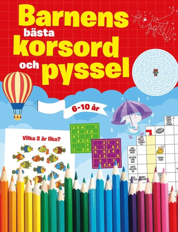 Lös lätta ordflätor och minikryss, finn fem fel, rita från prick till prick och hitta rätt väg genom labyrinten! Den här korsords- och pysselboken är ett klurigt och kul sätt att öva läs- och skrivförmågan och leka med språket. Boken är helt i färg och passar barn i åldern 6-10 år. Här finns mängder av skojiga utmaningar både för den som håller på att knäcka läskoden och den som redan läser obehindrat. Perfekt för resan eller hängmattan!