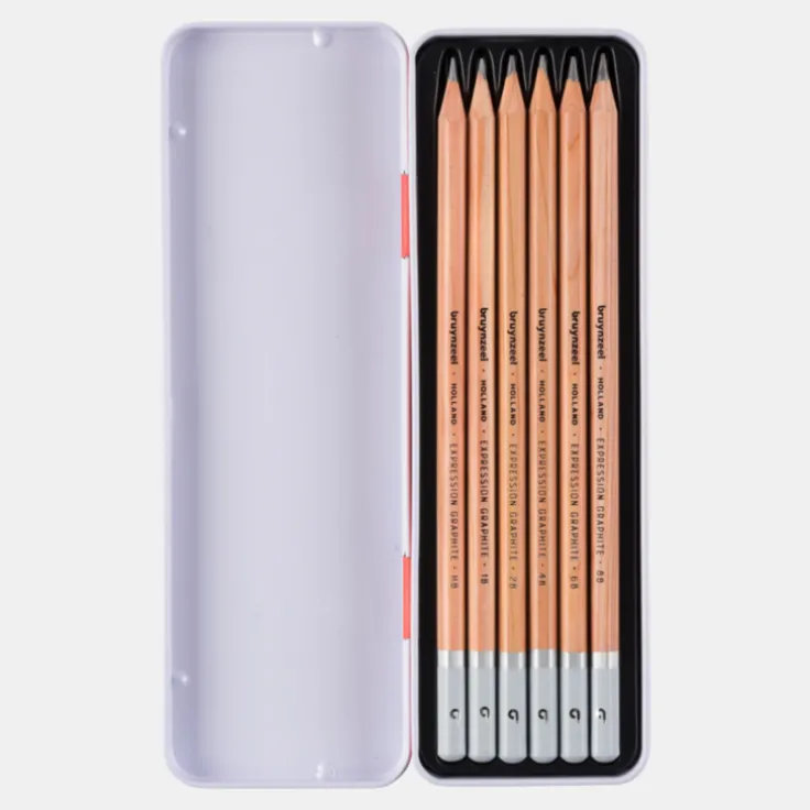 Grafitpenna av hög kvalitet för såväl teckning, skisser och skuggning. Innehåller olika hårdhetsgrader. Set om 6 pennor som är förpackade i ett praktiskt skyddande metalletui.