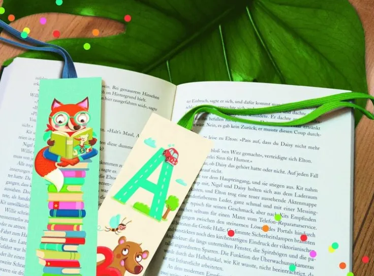 Bokmärke med elastiskt band. Markerar var du är i boken, bandet håller ihop den så bokmärket inte ramlar ur.