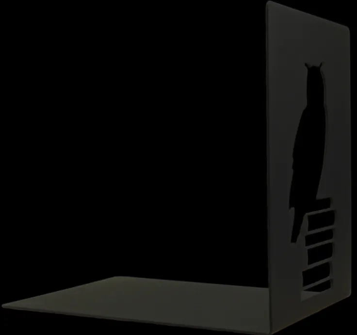 Bokstöd i metall i 2-pack. Stadiga med lång fot att ställa böckerna på. Utskuren uggla som motiv på stöden. Målade matt svarta. Fin dekoration i bokhyllan.