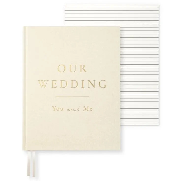 Bröllopsbok från Paperstyle med svensk design är speciellt framtagen för bröllop, med texten Our Wedding / You & Me präglat i guld på bokens framsida. I den här boken kan du fånga och spara alla magiska stunder – från planering och skisser, till gästlistor och hälsningar. Med de olinjerade sidorna får du full kreativ frihet att designa den precis som du önskar. Det följer även med ett löst blad som har linjer på den ena sidan och prickar på den andra vilket gör att du kan använda boken med olinjerad, linjerad eller prickad inlaga. Wedding Journal har ett exklusivt svenskt 115 grams papper från Munken som är FSC-och Cradle to Cradle certifierat, syrafritt, åldersbeständigt och kommer från ett av världens renaste pappersbruk. Den har ett hållbart och vackert textilomslag från Europa och pärmens insida består till 100% av återvunnen papp. Den är producerad CO2-neutralt på ett noga utvalt bokbinderi i Europa. Wedding Journal är framtagen med stor omtanke om vår miljö. Färg: Off-white