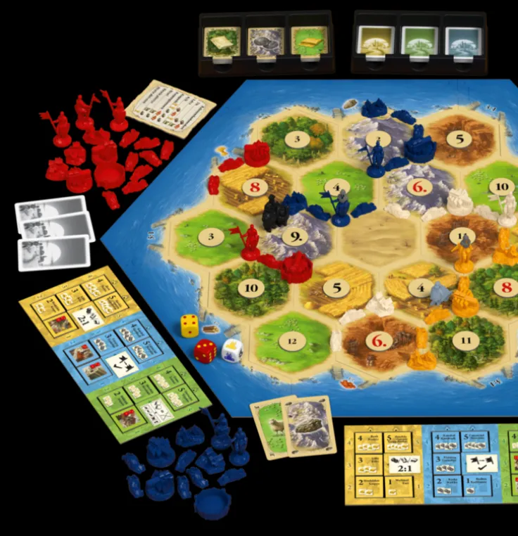 Catan-expansionen Städer och Riddare är en intensiv spelupplevelse med mer komplexa regler och längre speltid. Här växer byar till metropoler, vilket erbjuder nya möjligheter. Spelupplägget innebär mer direkt konflikt mellan spelarna, samtidigt som de med sina riddare måste försvara Catan mot barbarernas plundringståg.
