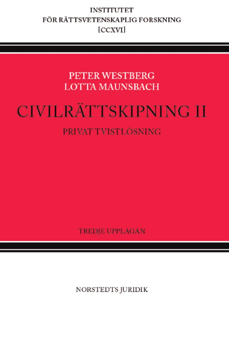 den privata rättskipningen som avser olika slags avtalsbaserade förfaranden för privat tvistlösning; förlikningsförhandling, medling, skiljeförfarande och förfarande inför en s.k. privatdomare. Den första delen täcker ett antal allmänna frågor om civilrättskipning och rättegången i tvistemål, inkluderat verkställighet av tvistemålsdomen. Böckerna är avsedda att användas som läromedel vid grundläggande studier i ämnet processrätt.