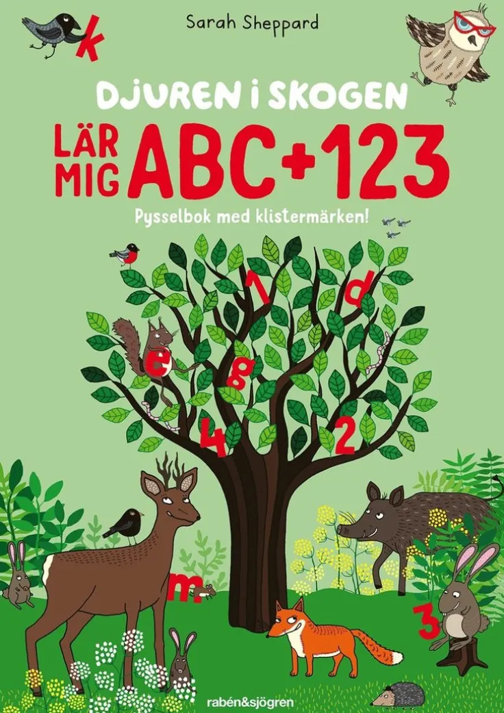 Tillsammans med Djuren i skogen går vi igenom alla siffror och bokstäver, hur de ser ut och vad man ska ha dem till. Sarah Sheppard lyckas på ett lekfullt sätt öva oss på läsning och räkning. Boken fungerar både för de som redan kan några siffror och bokstäver och för den som ännu inte lärt känna A-Ö. Roliga klistermärken ingår.