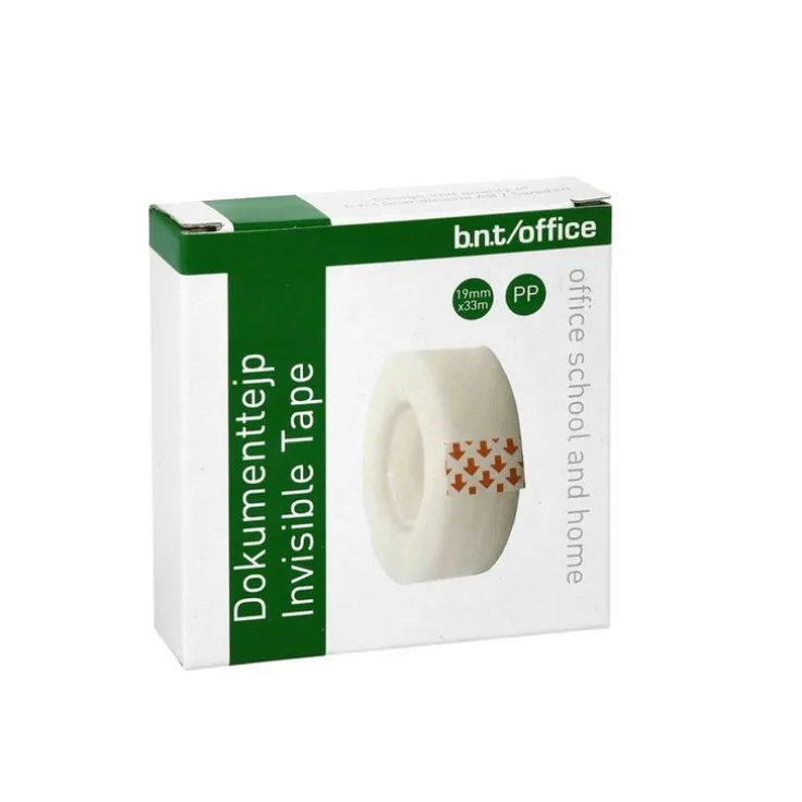 Lättriven dokumenttejp av högsta kvalitet. Matt med skrivbar yta som blir nästintill osynlig när den appliceras på underlaget. Vattenfast och gulnar inte. Mått: 33 m x 19 mm Material: Polypropylenfilm. Levereras i ask.