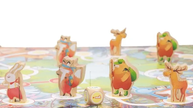 Gör dig redo att kasta dig genom skogen! För att vinna det här loppet måste du vara först med att hoppa längs spelstigen och ta med dig båda dina spelpjäser tillbaka till ditt målområde. Specialplatserna erbjuder oväntad hjälp!– Ett okomplicerat spel designat för de allra yngsta spelarna.– Med 8 fina träfigurer och en trätärning.– Inga plastdelar!