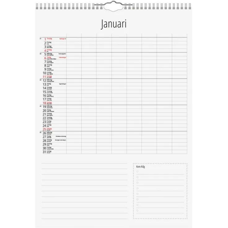 - Layout: Månad/Uppslag