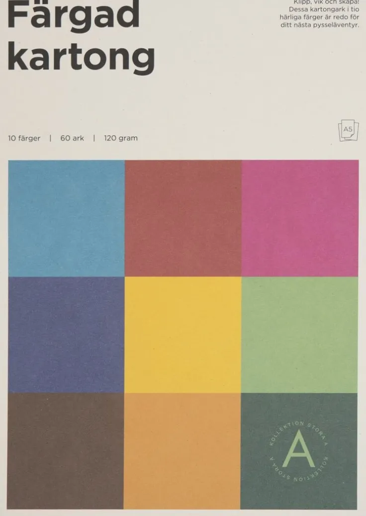 Låt kreativiteten flöda med detta färgglada kartongblock i A5 format! Innehåller 30 ark i 10 olika nyanser – perfekt för pyssel, kort, scrapbooking och andra kreativa projekt. Kartongarken är limmade och enkla att riva av när skaparlusten slår in. 120 g papper60 arkMiljömärkt Den Blå ängelnMåla, rita, pyssla och skapa! ingår i Akademibokhandelns egen kollektion – Kollektion Stora A.