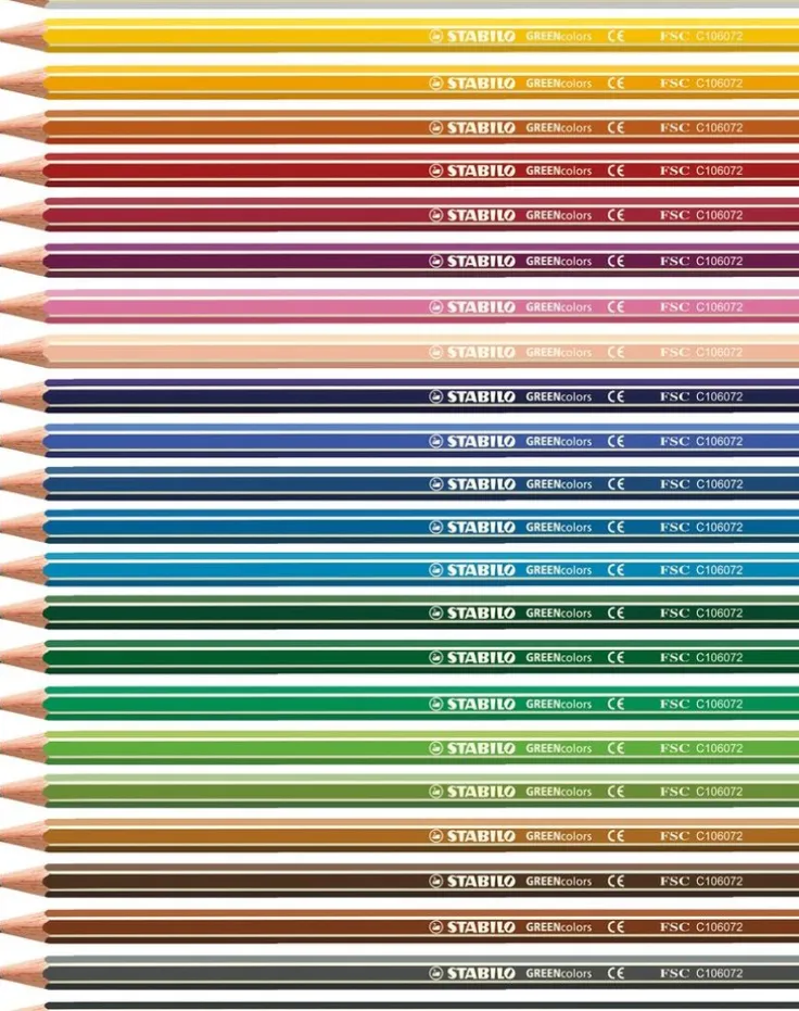 STABILO ARTY – färgrik kreativitet på papper! Det finns praktiskt taget inga gränser för färgerna som kan skapas med det omfattande STABILO ARTY-sortimentet, och ingen stil som inte kan bemästras tack vare den stora variationen av tips: från fina linjer till generösa penseldrag, från levande akvarelleffekter till exakta skisser. STABILO ARTY-serien erbjuder nöjet av otrolig färgintensitet och teckningsmöjligheter. Med STABILO ARTY-verktygen kan kreativa idéer enkelt uttryckas på papper! I serien ingår följande pennor; STABILO point 88 | Pen 68 | Pen 68 brush | pointMax | Cappi | aquacolor | Greencolors | woody 3in1 | Othello STABILO GREENcolors ARTY 24 pack färgblyertspennor ritar och målar med klara och intensiva färger. Klassisk smal sexkantig pennkropp. Tillverkade av 100% FSC trä. Diameter på blyertsstift 3mm.