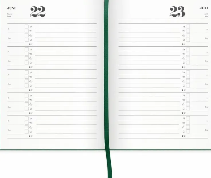 5-årsdagbok i A5-format med hårda pärmar i linnetextil. Femårsdagboken har förtryckta, årsneutrala blad där du skriver några rader om dagen i fem år. Samla det du vill minnas från livet och vardagen, meningarna blir snabbt en berättelse om just ditt liv.Förtryckta avsnitt för varje dag.Årsneutral.376st 100 g linjerad sidor.FSC®-certifierad.En perfekt årsdagbok för fem år i ditt liv!Format: A5. Omslag: Linnetextil. Inbunden. Detaljer: Märkband. Antal sidor: 376. Pappersvikt: 100 g. Miljöinformation: FSC®.