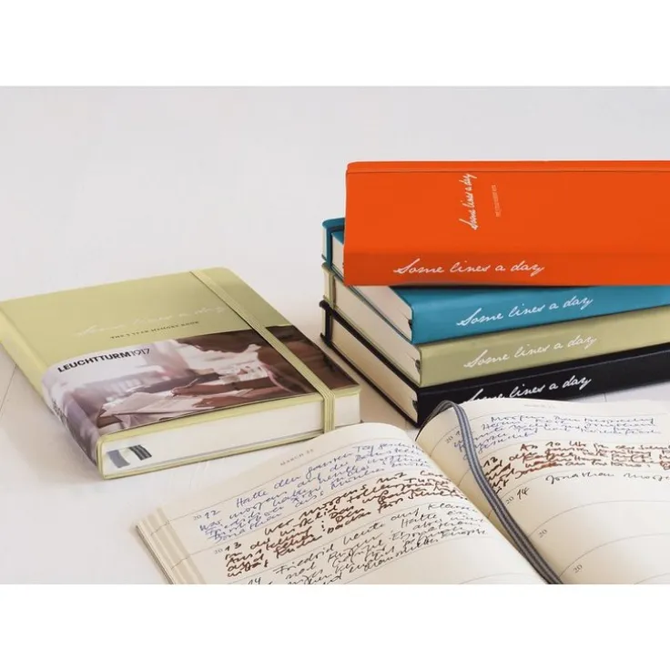 ”Some lines a day” – En 5-årsdagbok i A5-format. Skriv några rader varje dag och skapa din egen personliga dagbok. 365 sidor. FSC-certifierat och ”ink-proof”-papper. Innerficka, märkband. Hård pärm med elastiskt band. Självhäftande etiketter för märkning och arkivering. Mått: 145 x 210 mm