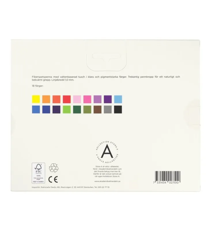 - Antal i förpackning: 18 pennor