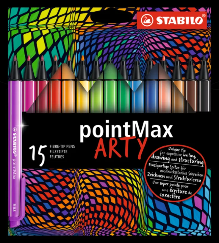Kreativitet! Skapad med kärlek och omsorg så att du kan skriva med ytterst bekvämlighet, med tiden kommer denna penna att känna som en förlängning av dig. Förutom de härliga färgerna designade för att du verkligen ska kunna uttrycka dig, kommer STABILO pointMax med ett praktiskt klipp som garanterar att din penna återspeglar din stil. Detta är inte allt, utan du kan lämna korken av i upp till 24 timmar utan att äventyra bläcket och spetsens smidighet. Det som verkligen gör STABILO pointMax så speciell är dess robusta och hållbara nylonpennspets. Speciellt utformad för att skapa en konsekvent ”M” 0,8 mm linjebredd. Idealisk för vardagliga uppgifter och inte minst inspirera unga konstnärer i deras skapande. Oavsett om du skriver ett vackert brev, tar snabba anteckningar eller helt enkelt drar 0,8 mm linjer, garanterar STABILO pointMax en perfekt precision i klara och intensiva färger.