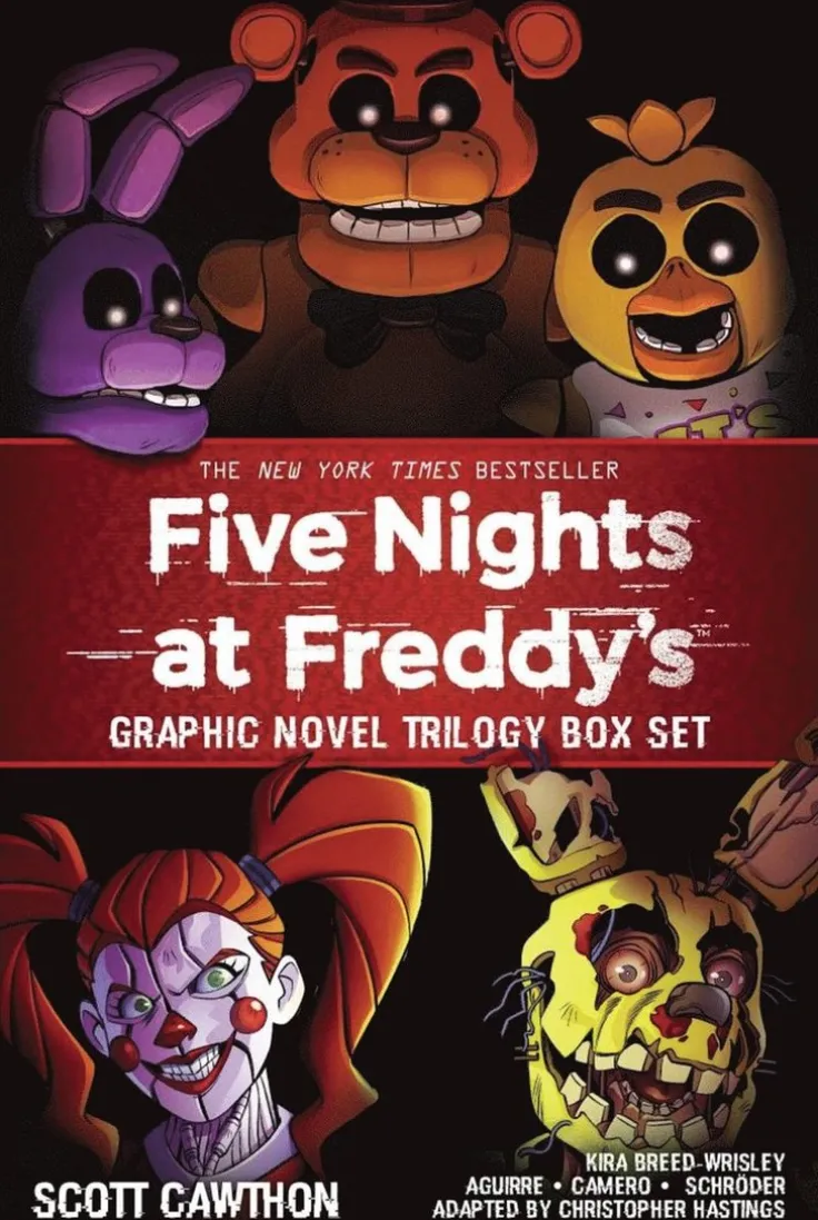 Don’t miss this boxed set of the New York Times bestselling Five Nights at Freddy’s graphic novel trilogy! It’s been ten years since the horrific murders at Freddy Fazbear’s Pizza tore the town of Hurricane, Utah, apart. Charlie, whose father owned the pizzeria, reunites with her childhood friends on the anniversary of the tragedy, and together they revisit the abandoned pizza place. After they discover a way inside, they realize that things are not as they used to be. The four animatronic mascots that once entertained patrons have a dark secret … one that sets Charlie and her friends on a path to unravel the many mysteries her father – and his twisted partner – left behind. Now readers can enjoy the complete original trilogy of Five Nights at Freddy’s in one graphic novel boxed set! This collection of terrifying tales is enough to unsettle even the most hardened Five Nights at Freddy’s fans Told through delightfully scary artwork This series features the newest, futuristic animatronics and settings from the upcoming Freddy games Perfect for gamers and fans of horror
