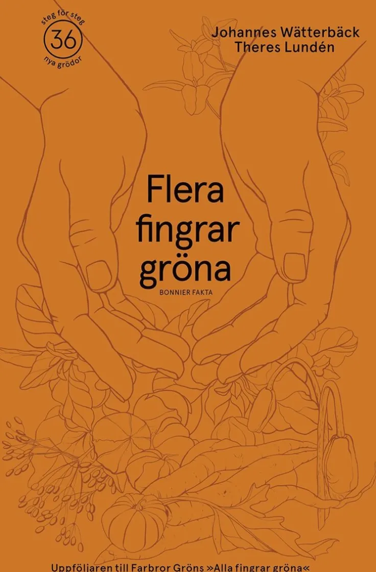 Flera fingrar gröna är är en uppföljare till Alla fingrar gröna, som kom ut 2015. Upplägget i denna nya bok är i princip detsamma som i den förra, men med andra spännande grödor, som till exempel sötpotatis, rotpersilja, melon, kailaan och ramslök.
