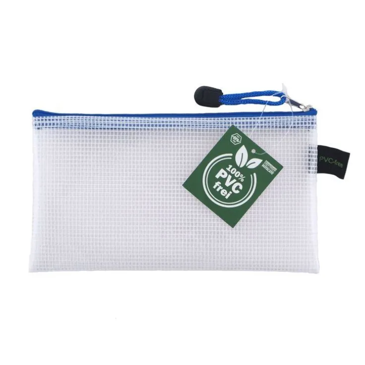 Fantastiskt tåligt fodral i PVC-fri transparent plast, vilket underlättar sökandet efter rätt sak, Mjukt och följsamt. Blå dragkedja med snodd. Användbart till det mesta, till dina pennor, penslar och övrigt konstnärsmaterial, för stranden, i väskan, i gympapåsen eller på kontoret. Storlek DL, 185x130mm.