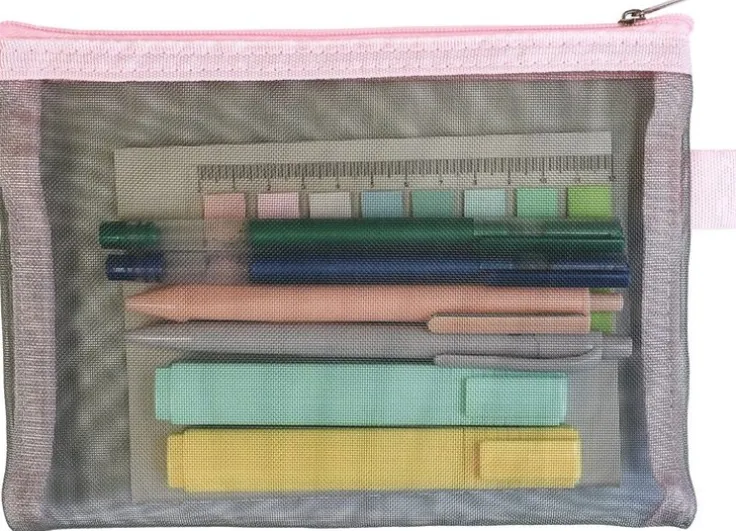 Fyllt pennfodral 8 delar mesh rosa/grön