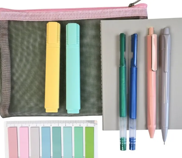 Det här praktiska pennfodralet är fullmatat med åtta skrivtillbehör som gör vardagen lite enklare, oavsett om du sitter i skolbänken eller på kontoret. Fodralet är 14×15 cm och tillverkat i slitstarkt grönt meshmaterial med dragkedja och rosa detaljer. Den smidiga storleken gör att fodralet enkelt får plats i väskan – perfekt för dig på språng!Innehåll:– Linjerat skrivhäfte i A6-format– 2 överstrykningspennor– Bläckpenna– Stiftpenna 0,7mm– 2 gelpennor– Indexflikar– LinjalEn del av Akademibokhandelns egen kollektion – Kollektion Stora A.