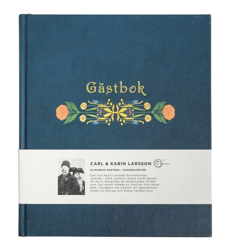 Inbunden gästbok med en framsida designad av Karin Larsson och insida skapad av Carl Larsson. Föreviga varma minnen och låt dina gäster fylla dess 144 blanka sidor med text och bild – bara fantasin sätter gränser. Motivet på omslaget skapades av Karin Larsson för cirka 100 år sedan och föreställer olika djur som rävar, grodor, kaniner och ormar. Motivet heter ”Kaninblomster” och originalutförandet är vävt samt komponerat med lingarn, ullgarn och halvylleband.Mått: 24×21 cm.120 g olinjerat papper.Tillverkad i Europa av FSC®-märkt papper, ett bättre val för dig och vår värld.Carl och Karin Larsson är ett av Sveriges mest inflytelserika konstnärspar genom tiderna. Deras konstnärskap verkade i stark symbios, bland annat genom att Karin designade de spektakulära miljöer som Carl sedan målade av. Motiven från deras hem i Sundborn har kommit att representera bilden av Sverige och älskas världen över. Genom att köpa produkter från Carl Larsson-gårdens officiella partners är du med och bidrar till bevarandet av Carl Larsson-gården i Sundborn och kulturarvet efter Carl och Karin Larsson. Nu i ett unikt samarbete med Akademibokhandeln för vår egen kollektion – Kollektion Stora A.