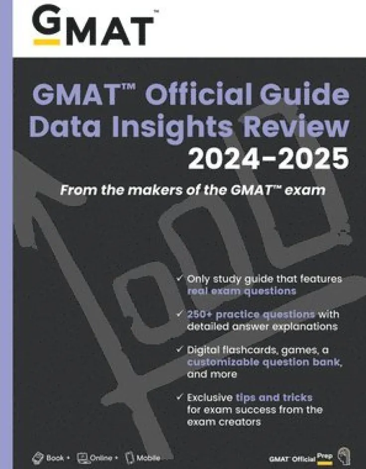 GMAT Official Guide Data Insights Review 2024-2025: Includes Book + Online Question Bank + Digital Flashcards + Mobile App The GMAT? Official Guide Data Insights Review provides focused practice to master the data insights section of the exam with 250+ practice questions that are not included in the main Official Guide 2024-2025. Designed by the makers of the GMAT exam, the GMAT Official Guide series is the only study guide that features real exam questions. Use this guide to: Master the data insights section of the exam Familiarize yourself with data analysis concepts through the updated review chapter Grow your confidence with the data insights questions (featuring 40+ new questions!) Review detailed explanations to understand correct and incorrect answers New! Get exclusive exam preparation tips from test prep organizations New! Practice with two-part analysis questions in the book PLUS! Focus your studying with the Online Question Bank – Bonus: included with purchase! Tailor your practice by building practice sets targeting question type and difficulty Discover your strengths and weaknesses with diagnostic quizzes Track your focus areas and progress with key metrics Reinforce concepts with flashcards and engaging games Challenge yourself with timed practice Use digital flashcards to master key concepts, also accessible on the mobile app The Online Question Bank is accessible through your mba.com account.