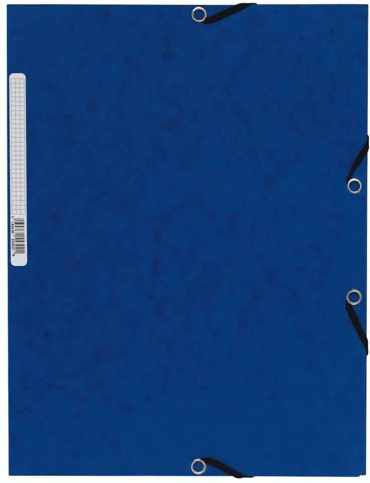 Mapp i slitstark kartong. Snoddarna ser till att innehållet hålls på plats. 3 klaffar. A4, blå.