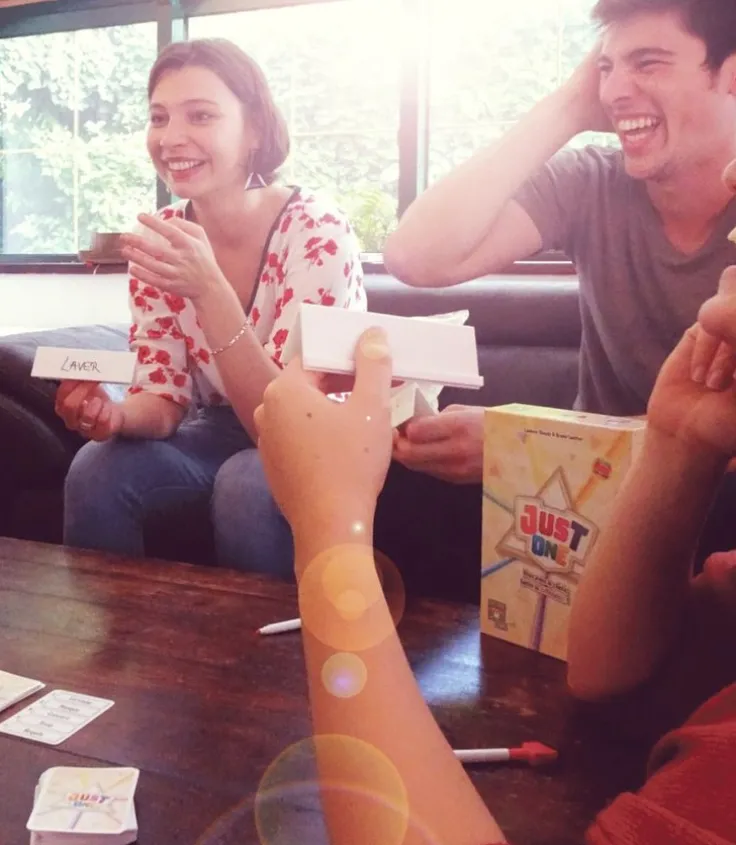 I Just One ska ni sammarbeta om att gissa så många ord som möjligt genom att ge ledtrådar till din medspelare. Om någon av ledtrådarna är samma, tags dessa bort och det resterande visas för spelaren. Det är därför bra att vara lite uppfinningsrik och inte ge uppenbara ledtrådar.