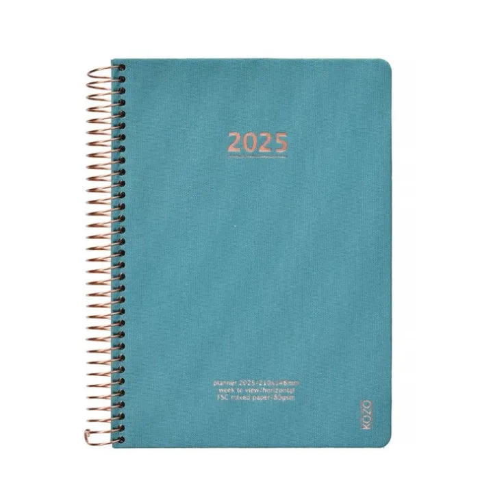 KOZO Kalender 2025 är en stilren, trespråkig årskalender som är perfekt för att organisera både jobb, skola och vardag.Det hårda omslaget och den kaxigt stora ryggspiralen gör det enkelt att öppna och skriva i kalendern även när du är på resande fot. Kalendern innehåller elegant crèmefärgat papper och är klädd i ett lyxigt canvastyg med detaljer präglade i brons.Minimalistisk liggande layout med en vecka per uppslag, där du har lika mycket plats för planering på alla veckans dagar. I varje uppslag har du dessutom plats för anteckningar och en smidig översikt över kommande veckors datum. Kalendern innehåller årsöversikter med helgdagar för 2025 och 2026 för Sverige, Danmark och Norge, årsplaneringar, plats för personlig information och linjerade sidor för egna anteckningar.Språk: Svenska, danska och norska. Kalendarium: 30 dec 2024 – 4 jan 2026. FSC-märkt papper.