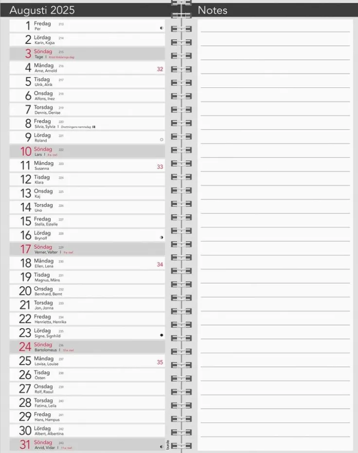 - Layout: Månad/Blad