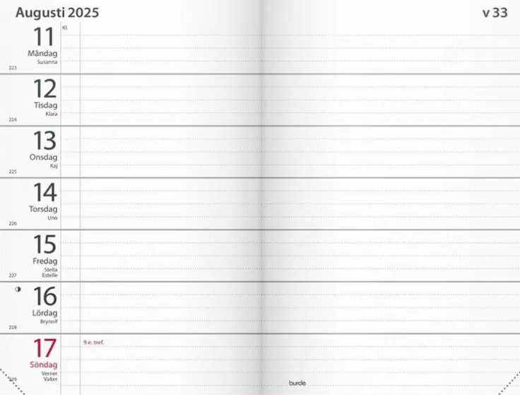 - Layout: Vecka/Uppslag