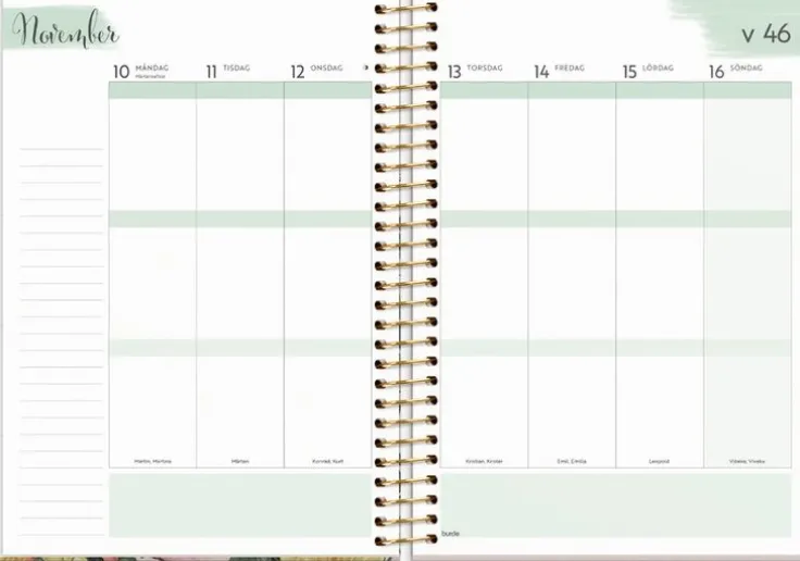 När du har mycket att hålla reda på är det tryggt att ha ett verktyg som på riktigt hjälper dig att strukturera din tid. Life Organizer är en trendig kalender med veckoplanering och tydlig månadsöversikt, för dig som vill ha med dig ditt liv överallt! Här får du gott om plats att planera dina dagar, skriva listor, kom ihåg och reflektera över livet. Kalendern har smarta flikar som delar in månaderna och flera ark med klistermärken så du kan piffa lite extra. Gör planeringen till en livsstil du också!Kalender 2025 från Burde. Format: 163×229 mm. Layout: Stående. Vecka/uppslag. Kalendarium: 2024-12-30 – 2026-01-04. Omslag: Kartong med struktur. Spiralbunden. Detaljer: Pappersficka. Innehåll: Årsöversikter, årsplan, anteckningssidor, stickersark. Antal sidor: 176. Miljöinformation: FSC®.