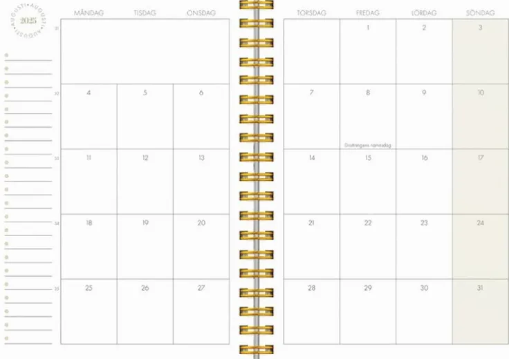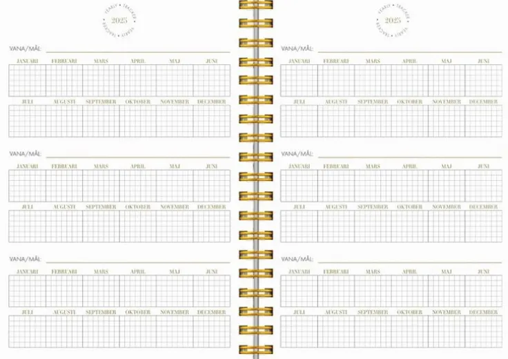 En personlig kalender som fokuserar på ditt välmående och balans, med olika verktyg som är inbygda i din veckoplanering. Planera och strukturerar ditt liv utifrån dina behov, i kalendern kan du dela in din dag och liv i tre delar för att hjälpa dig fokusera på olika element i livet.Kalender 2025 från Burde. Format: A6. Layout: Stående. Vecka/uppslag. Kalendarium: 2024-12-16 – 2026-01-04. Omslag: Kartong med struktur. Spiralbunden. Detaljer: Gummiband. Flyttbar linjal. Innehåll: Årsöversikter, Månadsuppslag, Måltracker, Checklistor, Linjerade sidor, Prickade sidor. Antal sidor: 160. Miljöinformation: FSC®.