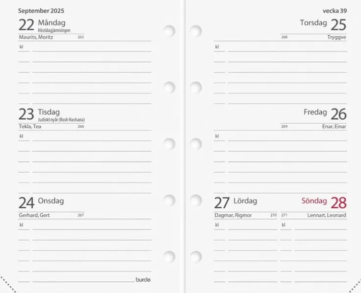 Hålad kalenderrefill till systemkalender med ringmekanism.Kalender 2025 från Burde. Format: 63×107 mm. Layout: Liggande. Vecka/uppslag. Kalendarium: 2024-11-11 – 2026-01-04. Omslag: Kartong. Innehåll: Årsöversikt. Antal sidor: 160. Miljöinformation: FSC®.