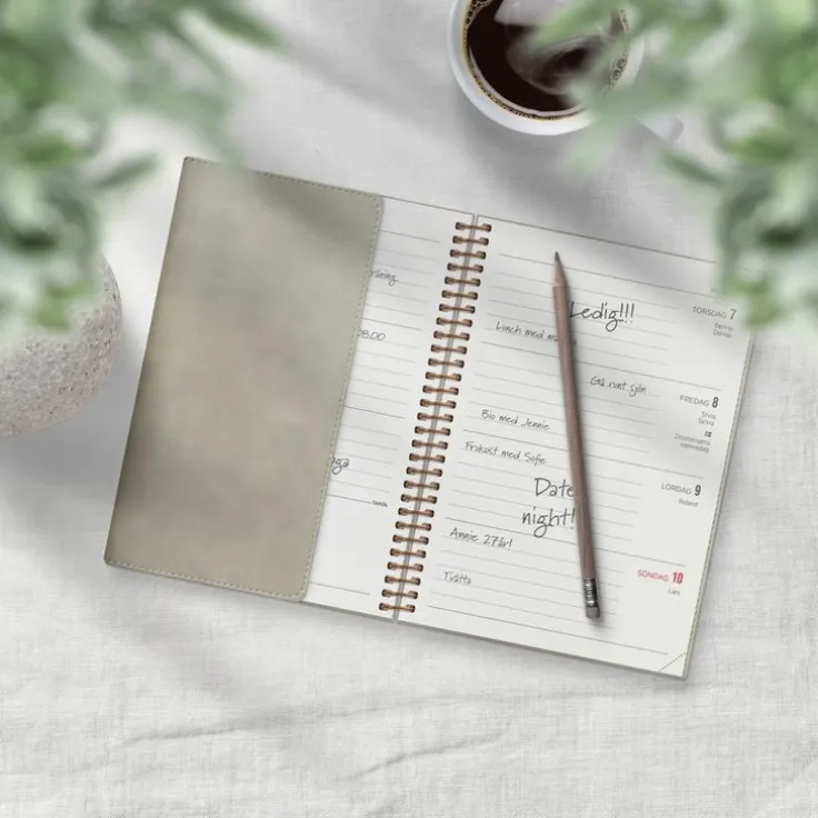 Kalender med mjuk pärm i konstläder med den populära flärpen som kan användas som bokmärke. Ett klassiskt uppslag med liggande layout där fokus ligger på tydlig veckoplanering. Inlagans layout passar dig som har mycket på gång, oavsett veckodag. Kalendern är liten och enkel och med lika mycket utrymme för både vardag och helg.Kalender 2025 från Burde. Format: A6. Layout: Liggande. Vecka/uppslag. Kalendarium: 2024-12-09 – 2026-01-04. Omslag: Konstläder. Spiralbunden. Innehåll: Årsöversikter, årsplaner. Antal sidor: 144. Miljöinformation: FSC® papper.