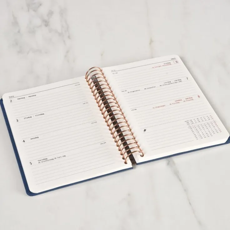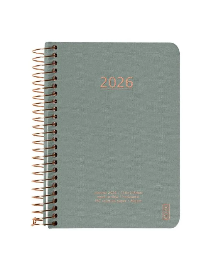 KOZO Planner 2025 är en stilren, trespråkig årskalender som är perfekt för att organisera både jobb, skola och vardag.Det hårda omslaget och den kaxigt stora ryggspiralen gör det enkelt att öppna och skriva i kalendern även när du är på resande fot. Kalendern innehåller elegant crème färgat papper och är klädd i ett lyxigt canvastyg med detaljer präglade i brons. Minimalistisk liggande layout med en vecka per uppslag, där du har lika mycket plats för planering på alla veckans dagar. I varje uppslag har du dessutom plats för anteckningar och en smidig översikt över kommande veckors datum. Kalendern innehåller årsöversikter med helgdagar för 2025 och 2026 för Sverige, Danmark och Norge, årsplaneringar, plats för personlig information och linjerade sidor för egna anteckningar. Språk: Svenska, danska och norska. Kalendarium: 30 dec 2024 – 4 jan 2026. FSC återvunnet papper.