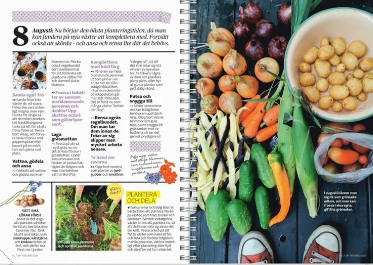Tillsammans med tidningen Allt om Trädgård har Burde tagit fram en trädgårdskalender som hjälper dig att planera hela odlingsåret. Varje månad inleds med ett inspirerande uppslag där du får tips och påminnelser om vad som behöver göras i trädgården baserat på tiden på året, därefter följer vanlig klassisk veckoplanering. Det tåliga omslaget i plast gör att du kan ha med kalendern ut i odlingarna utan att innehållet skadas av jord och vatten. Planera smart och nå dina odlingsdrömmar!>Kalender 2026 från Burde. Format: A5. Layout: Stående. Vecka/uppslag. Timindelning 8-18. Kalendarium: 2025-12-01 – 2027-01-03. Omslag: Återvunnen PP-plast. Spiralbunden. Detaljer: Gummiband. Innehåll: Kyrkliga helgdagar, flaggdagar, helgdagar/aftnar, månfaser, namnsdagar, temadagar/händelser, årsöversikt/årsöversikter, årsplan/årsplaner, anteckningssidor linjerade, zonkarta över växtlighetszoner. Antal sidor: 160. Miljöinformation: FSC®. Omslag i återvunnen PP-plast.