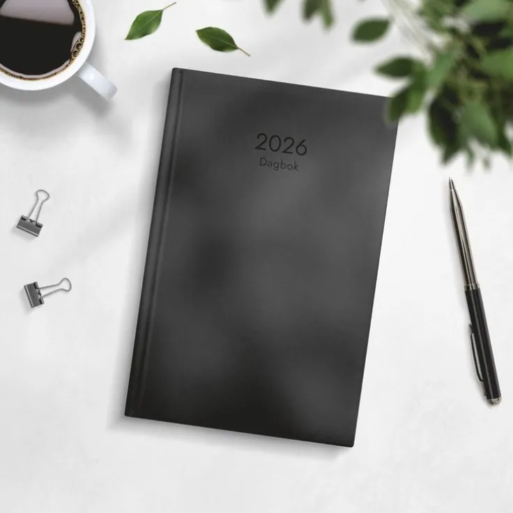 Kalender 2026 Dagbok svart konstläder