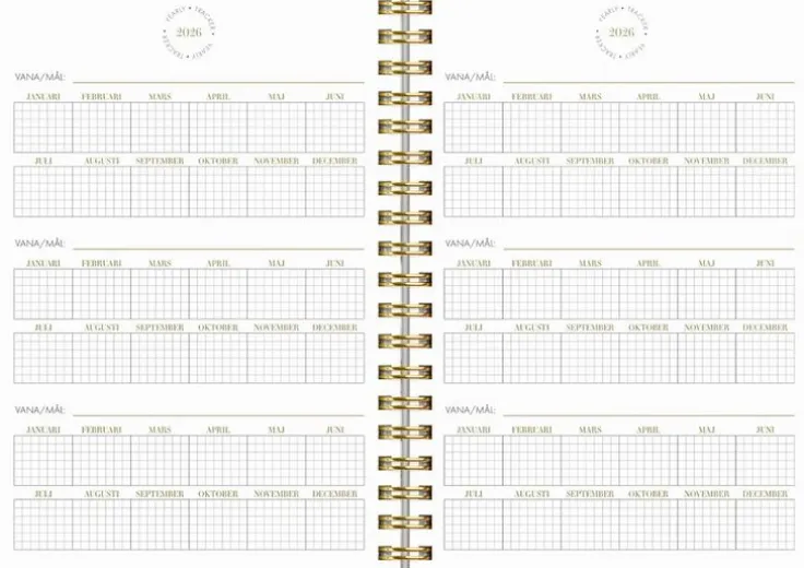 En personlig kalender som fokuserar på ditt välmående och balans, med olika verktyg som är inbyggda i din veckoplanering. Planera och strukturera ditt liv utifrån dina behov. I Life Planner Essentials kan du dela in din dag och ditt liv i tre delar för att hjälpa dig att fokusera på vardagens olika delar. >Kalender 2026 från Burde. Format: A6. Layout: Stående. Vecka/uppslag. Kalendarium: 2025-12-15 – 2027-01-03. Omslag: Kartong med struktur. Spiralbunden. Detaljer: Gummiband. Flyttbar pappersmarkör. Innehåll: Flaggdagar, helgdagar/aftnar, månadsuppslag, månfaser, namnsdagar, temadagar/händelser, årsöversikt/årsöversikter, checklistor, måltracker, anteckningssidor prickade, anteckningssidor linjerade. Antal sidor: 160. Miljöinformation: FSC®.