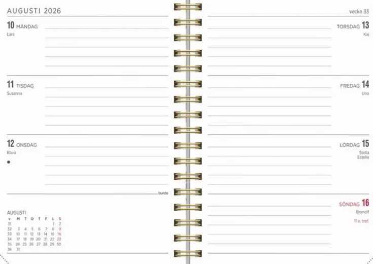 Kalender 2026 som har söta blommor och gulddetaljer på omslaget. Format: A6. Layout: Liggande. Vecka/uppslag. Kalendarium: 2025-12-08 – 2027-01-03. Omslag: Kartong med struktur. Spiralbunden. Antal sidor: 144. Miljöinformation: FSC®.