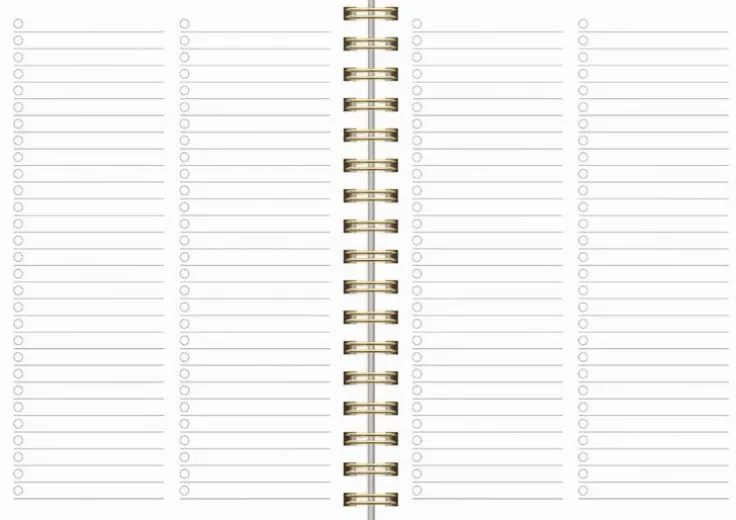 Kalender 2026 med årtal präglat i guld och med en guldspiral. Format: A6. Layout: Liggande. Vecka/uppslag. Kalendarium: 2025-12-08 – 2027-01-03. Omslag: Kartong. Spiralbunden. Antal sidor: 144. Miljöinformation: FSC®.
