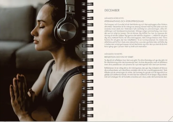 Träningskalendern hjälper dig att få sunda vanor i din vardag, men även att behålla dem över tid. Kalendern passar dig som vill ha en allsidig träning med en kombination av löpning och styrketräning. Det ingår även ett program för dig som vill komma i gång med meditation och andningsövningar så att den mentala träningen blir en naturlig del av din vardag också. Båda programmen är signerade löpcoachen och PT:n Jenny Sunding. Jenny ger också hälsosamma tips som håller inspirationen vid liv hela året. På varje uppslag finns dels en kalendersida med veckoplanering och dels en aktivitetssida. Träningskalendern har ett funktionellt plastomslag för att kunna följa med dig på träningspassen och även 2 framsidor att växla mellan.>Kalender 2026 från Burde. Format: A6. Layout: Liggande. Vecka/uppslag. Kalendarium: 2025-12-22 – 2027-01-03. Omslag: PP-plast. Spiralbunden. Detaljer: Gummiband. Innehåll: Kyrkliga helgdagar, flaggdagar, helgdagar/aftnar, månfaser, namnsdagar, temadagar/händelser, årsplan/årsplaner,. Antal sidor: 160. Miljöinformation: FSC®.
