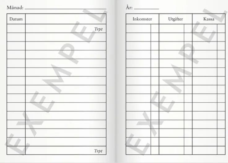 Kolumn för datum, text, inkomster, utgifter, kassa. 48 sid. Häftad. FSC®. Format: A7.