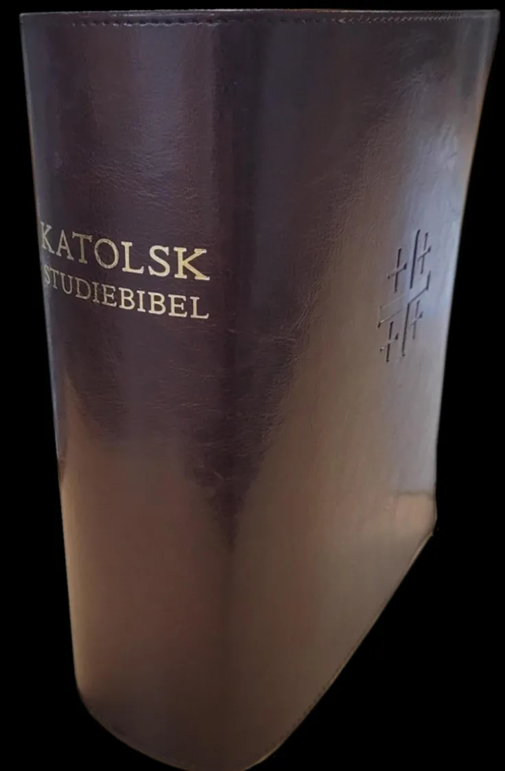 Bibeln är alltid aktuell, och i här möter vi Skaparen, patriarkerna och profeterna samt de första vittnesbörden om kyrkans Herre. Texterna är tillkomna i en specifik, historisk kontext, och måste tolkas utifrån den – men inte tolkas i första hand av oss som enskilda individer utan i ljuset av kyrkans tradition och dem som gått före. »Katolsk studiebibel« är ett vittnesbörd om hur den katolska kyrkan i Sverige står med ett ben i en svensk kontext – där bibelöversättningar sedan reformationens dagar varit en statlig angelägenhet med kommissioner – och ett i en universell katolsk kontext, där bibeln tolkas av kyrkan själv (genom kyrkofäder, koncilier, påvliga dokument, katolska bibelforskare och kyrkans egen katekes) snarare än genom ett fåtal uttolkare. Projektet med att ta fram »Katolsk studiebibel« initierades av biskopen år 2015. Jämte utförliga inledningar till samtliga bibelböcker finns katolska kommentarer, som har hämtats från kyrkofäderna, koncilietexter, påvliga dokument, katolska exegeter och Katolska kyrkans katekes. Inledningarna till varje bibelbok består av avsnitt om författare, datering, adressat, struktur och tema. Allt material har granskats ur bibelvetenskaplig synpunkt av docent Tord Fornberg, Uppsala, och ur teologisk synpunkt av professor Gösta Hallonsten, Lund. Linnetrådshäftat mjukband, 3496 sid.
