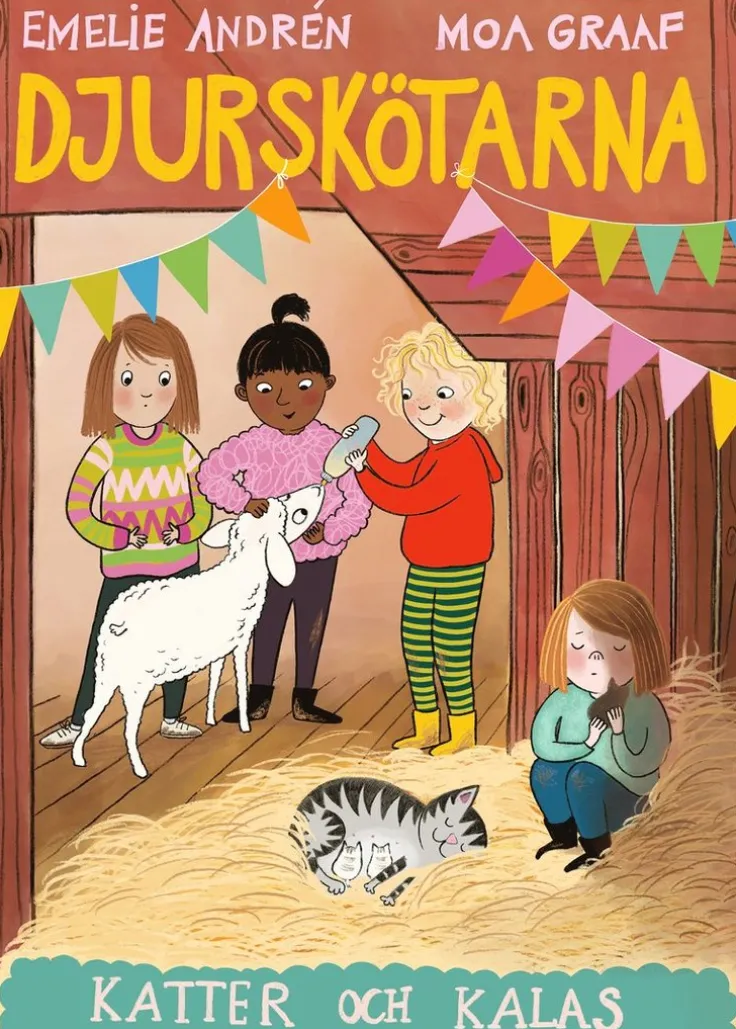 Djurskötarna: Katter och kalas är tredje delen i Emelie Andréns och Moa Graafs börja läsa-serie om djurskötarna på Södervikens gård.