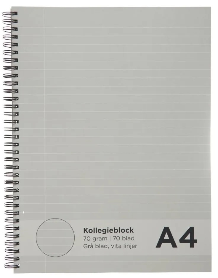 Kollegieblock A4 linjerat – grå inlaga/vita linjer