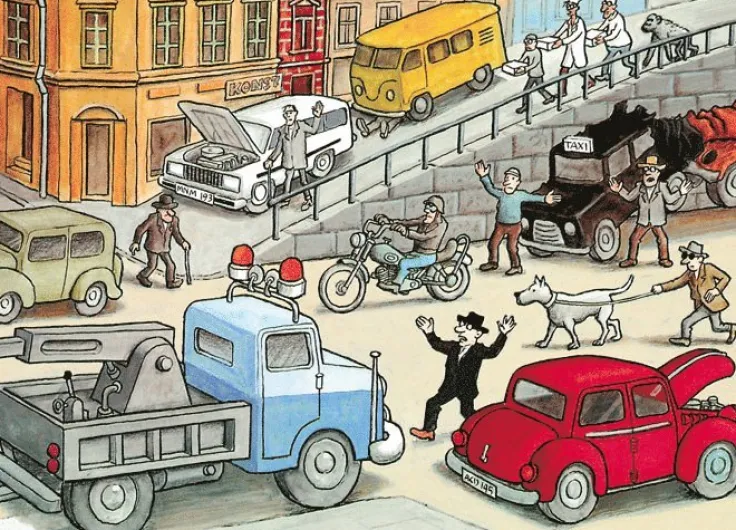 Kaos på gatan, ett motiv av Jan Lööf ur Örnis bilar.