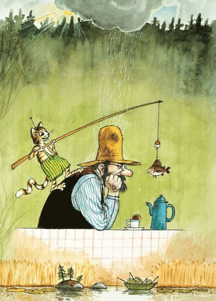 Findus roar Pettson ur boken Stackars Pettson av Sven Nordqvist.
